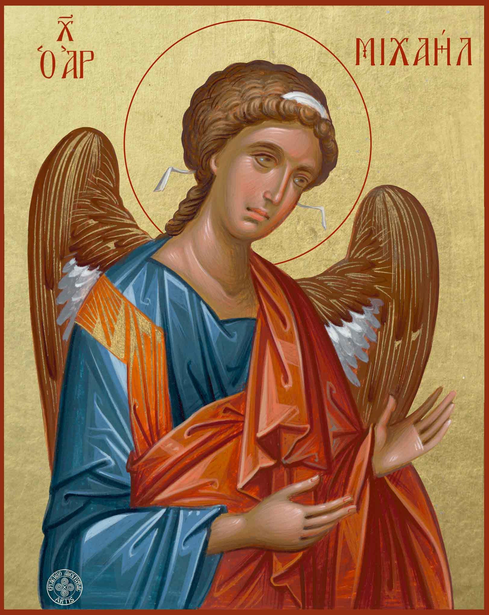 The Lord God appointed the Archangel Michael as Chief Commander of the Heavenly Hosts, casting down the arrogantly proud Lucifer from Heaven and the other fallen spirits when they rebelled against God. The name Michael comes from the Hebrew meaning "who is like unto God". Archangel Michael is honored for his actions in defense of Heaven and humanity, both in the Old Testament and New Testament. He is a steadfast defender of the Orthodox faith and of faithful people, often appearing in defense of the helpless. Archangel Michael is particularly beloved in the Russian Orthodox Church for many miracles attributed to him in defense of the Russian Orthodox people. Orthodox Christians invoke Archangel Michael for protection from invasion by enemies and from civil war, and for the defeat of adversaries on the field of battle. He conquers all spiritual enemies. Archangel Michael is portrayed in Orthodox iconography in his role as Chief Commander of the Heavenly Hosts, holding a sword, shield and/or spear and adorned in armor (usually in the style of whatever culture created the icon) as well as wings and a red cape.