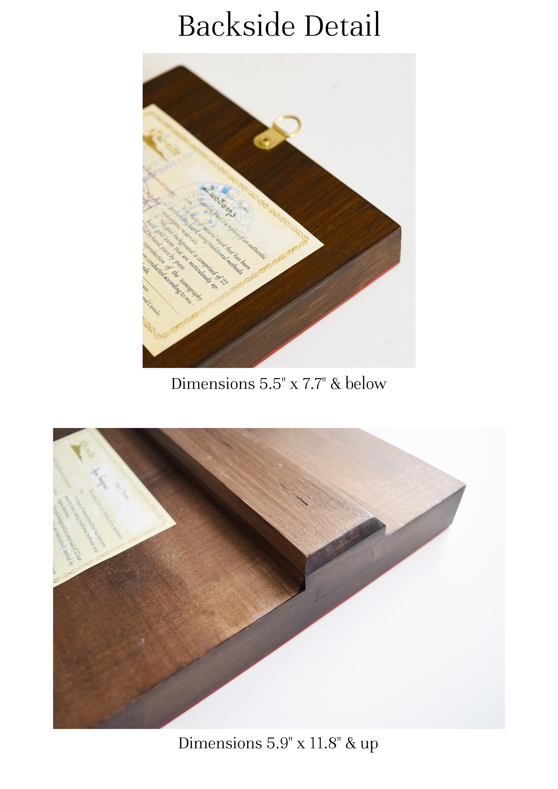 Backside details vary with icon size and serve to ensure that your Holy Icon will stand the test of time.