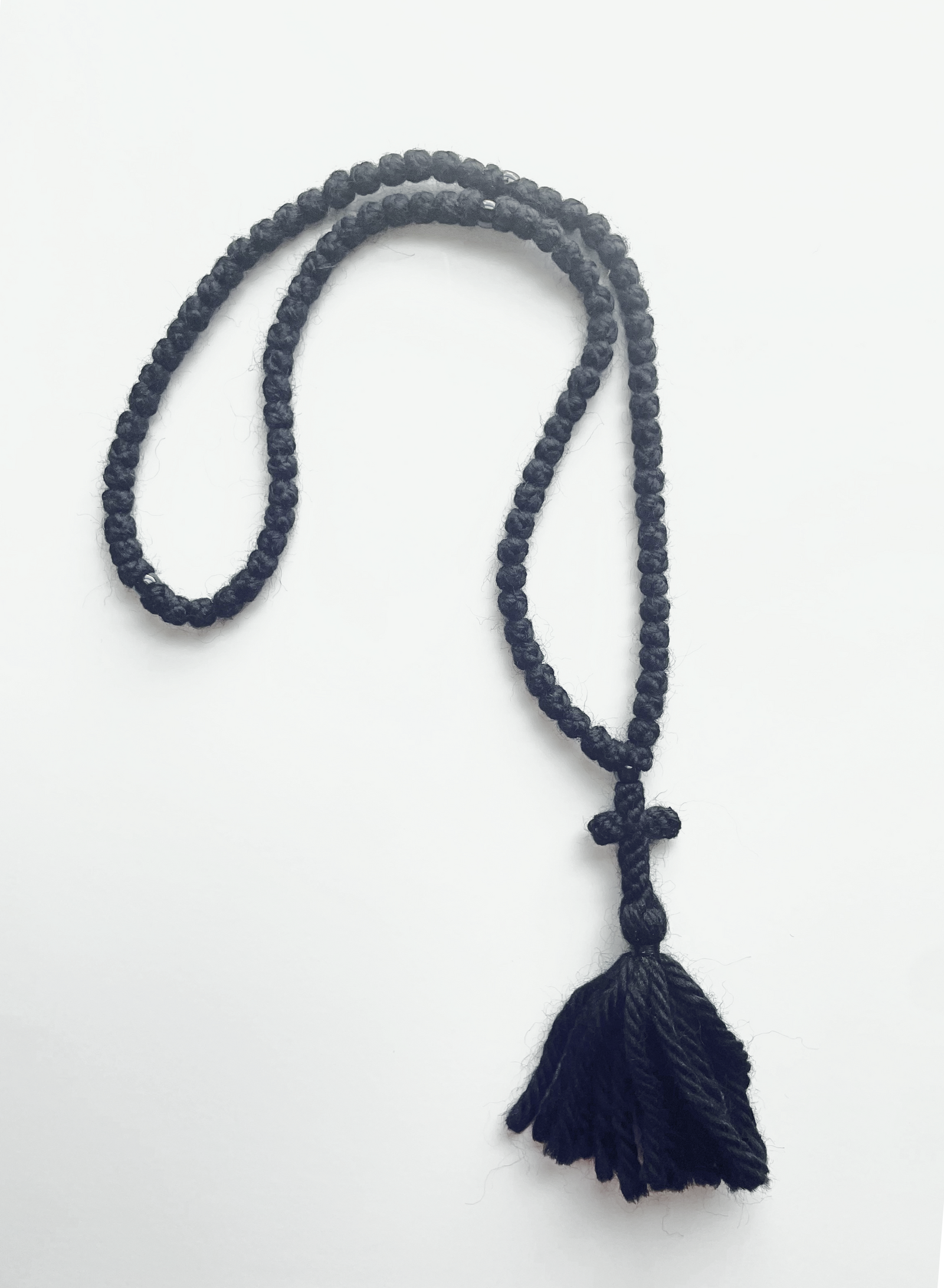 Wool Prayer Rope (Extra Long) with Knitted Cross & Tassel