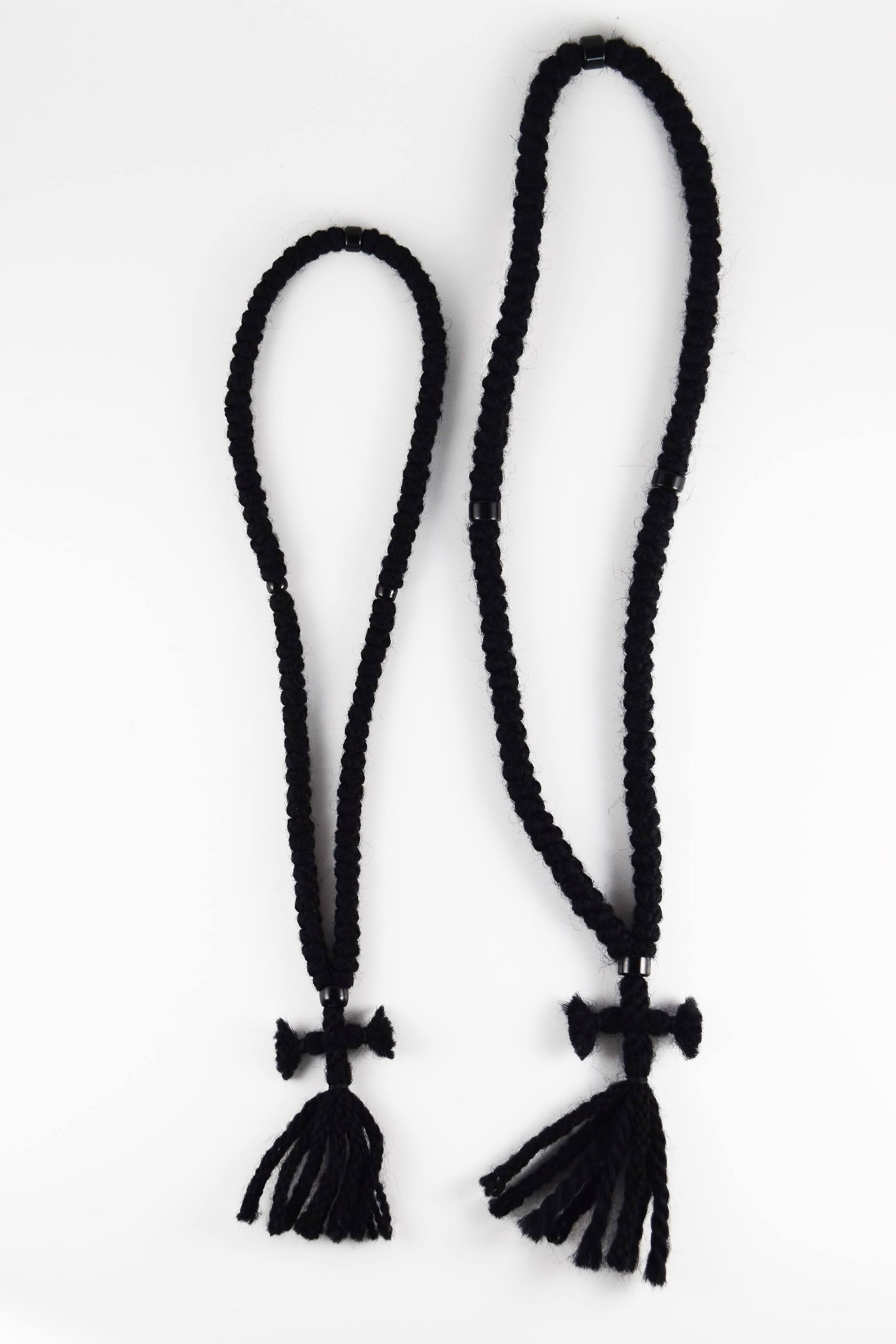 Handcrafted by monks in Mount Athos, these wool prayer ropes are offered in two knitting styles (loosely wound & tightly wound).