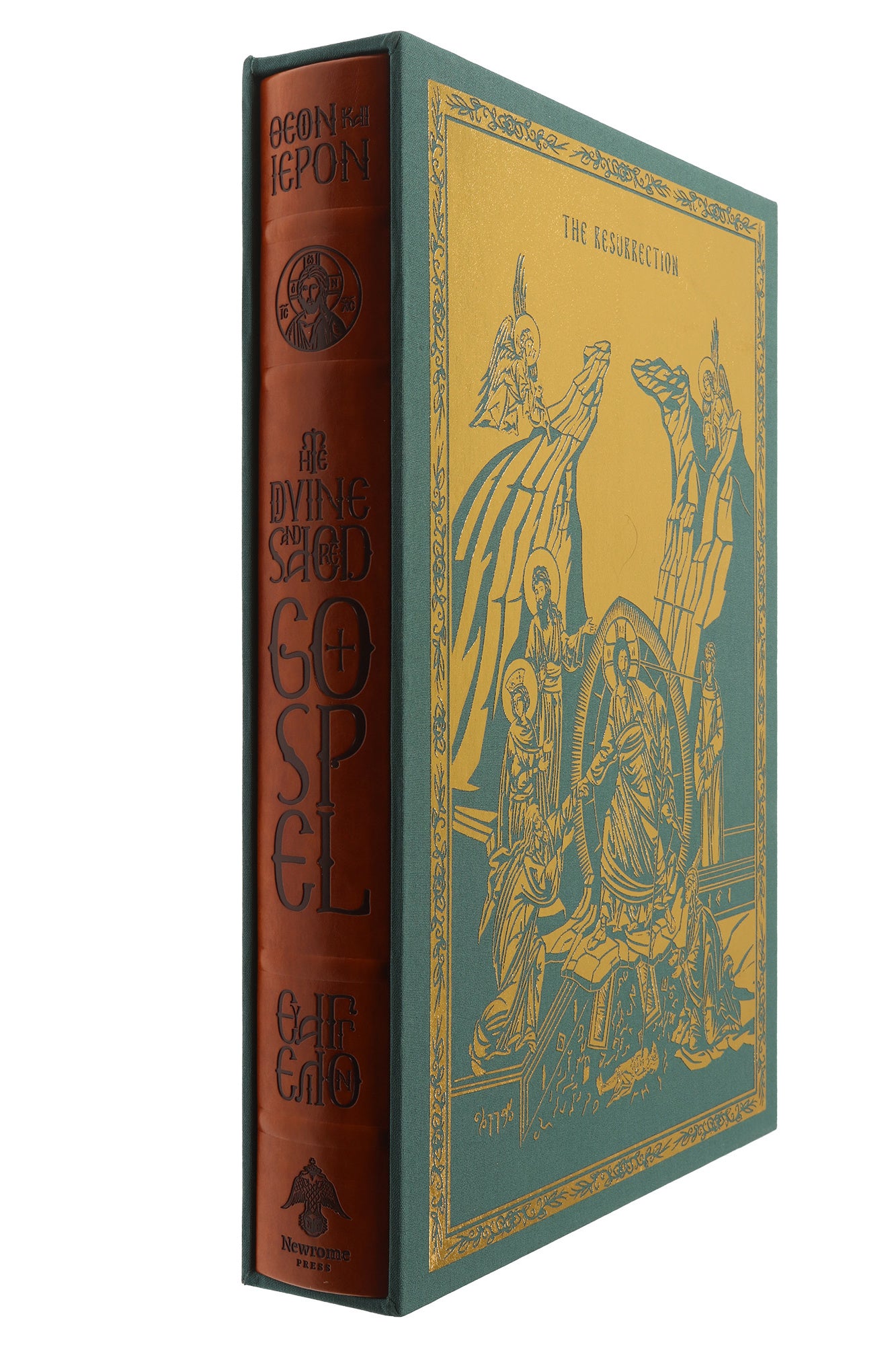 This uniquely beautiful 620 pages publication is hardbound in red cloth with gold stamping, gilded edges, two page marker ribbons, and includes a clothbound gold-stamped slipcase. Printed on 100 GSM acid-free light cream paper, this edition includes original color illuminations based on ancient prototypes and finely pencil-drawn iconographic illustrations that give it a uniquely beautiful Orthodox aesthetic. The text also includes marginal notes (Old Testament references, Gospel reference locators, and select Synaxarion notices) that enhance the Gospel text for study and usability.